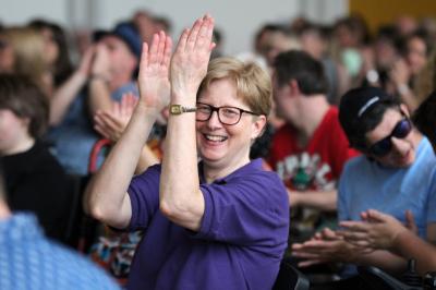 Movers & Shakers were next up and put on another AAM-azing performance. It’s hard to believe that this is only the third time they’ve joined our other projects on stage. Participants used percussion instruments to take us on a musical adventure before donning pink cowboy hats for a bit of line dancing! It was great fun to see so many people joining in from the crowd, too!